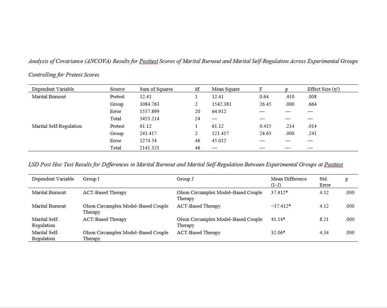 Family and Couple Therapy: This section is divided into two sub-areas: