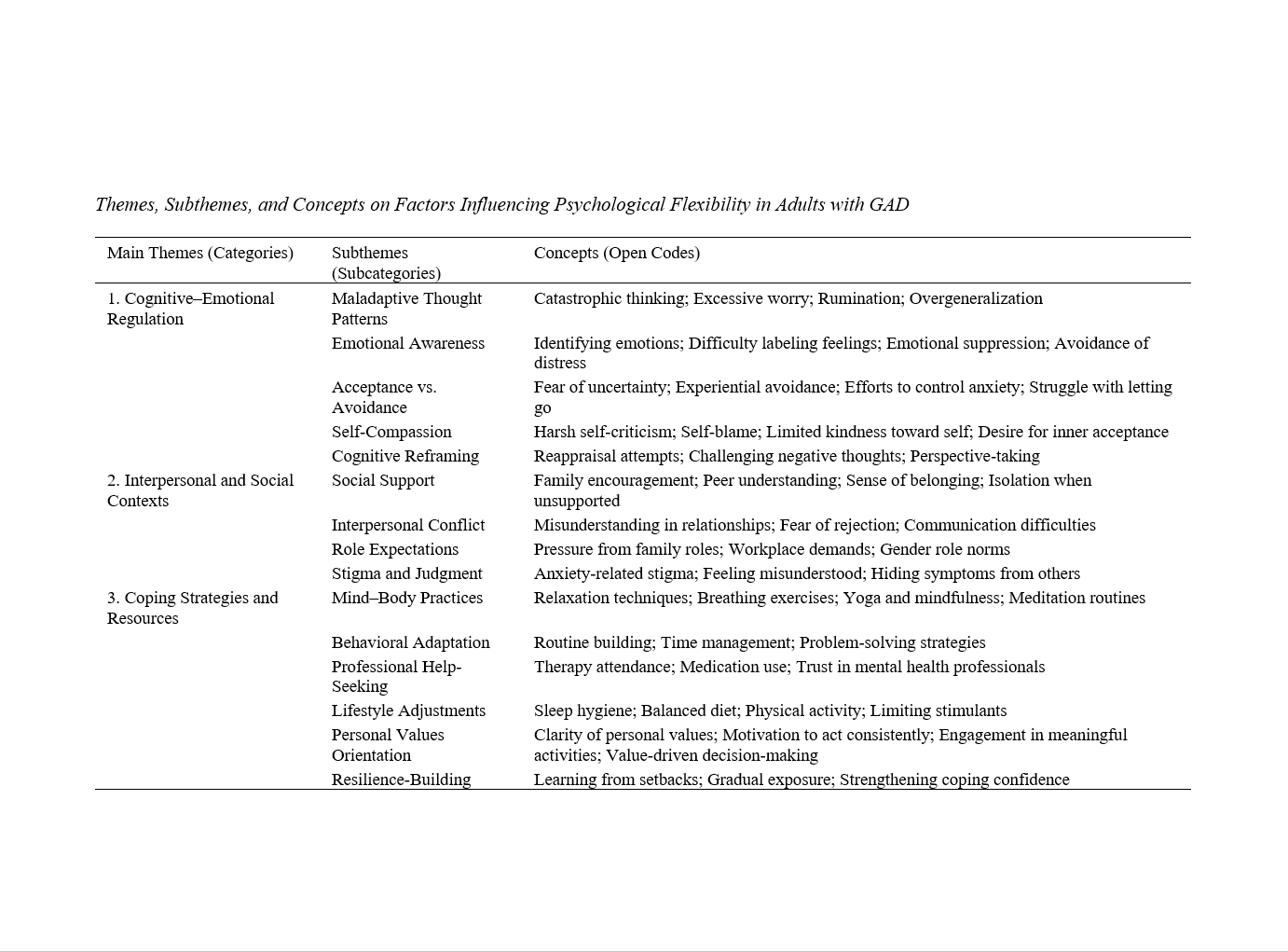 Factors Influencing Psychological Flexibility in Adults With Generalized Anxiety Disorder: A Qualitative Study