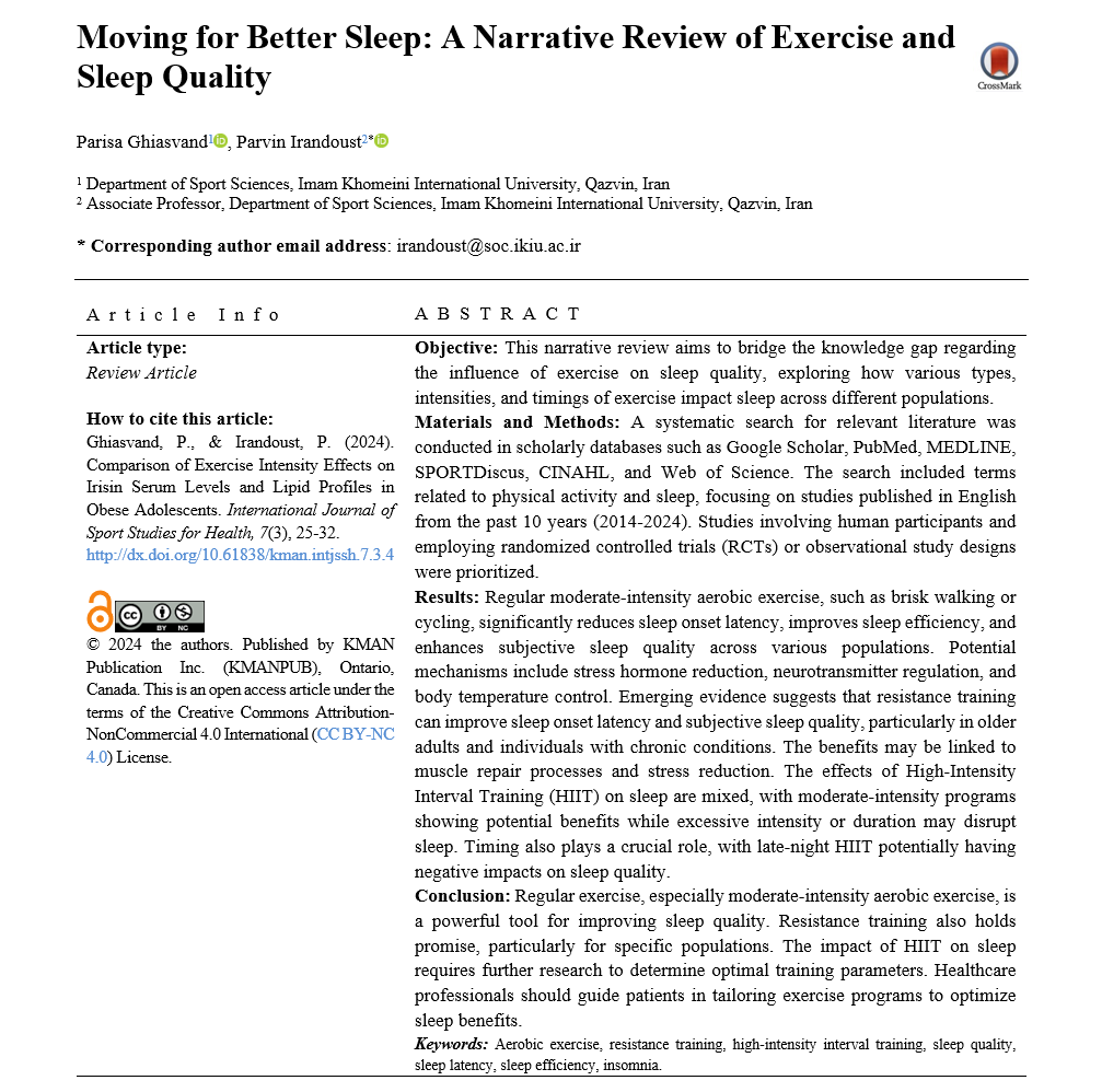 • Moving for Better Sleep: A Narrative Review of Exercise and Sleep Quality