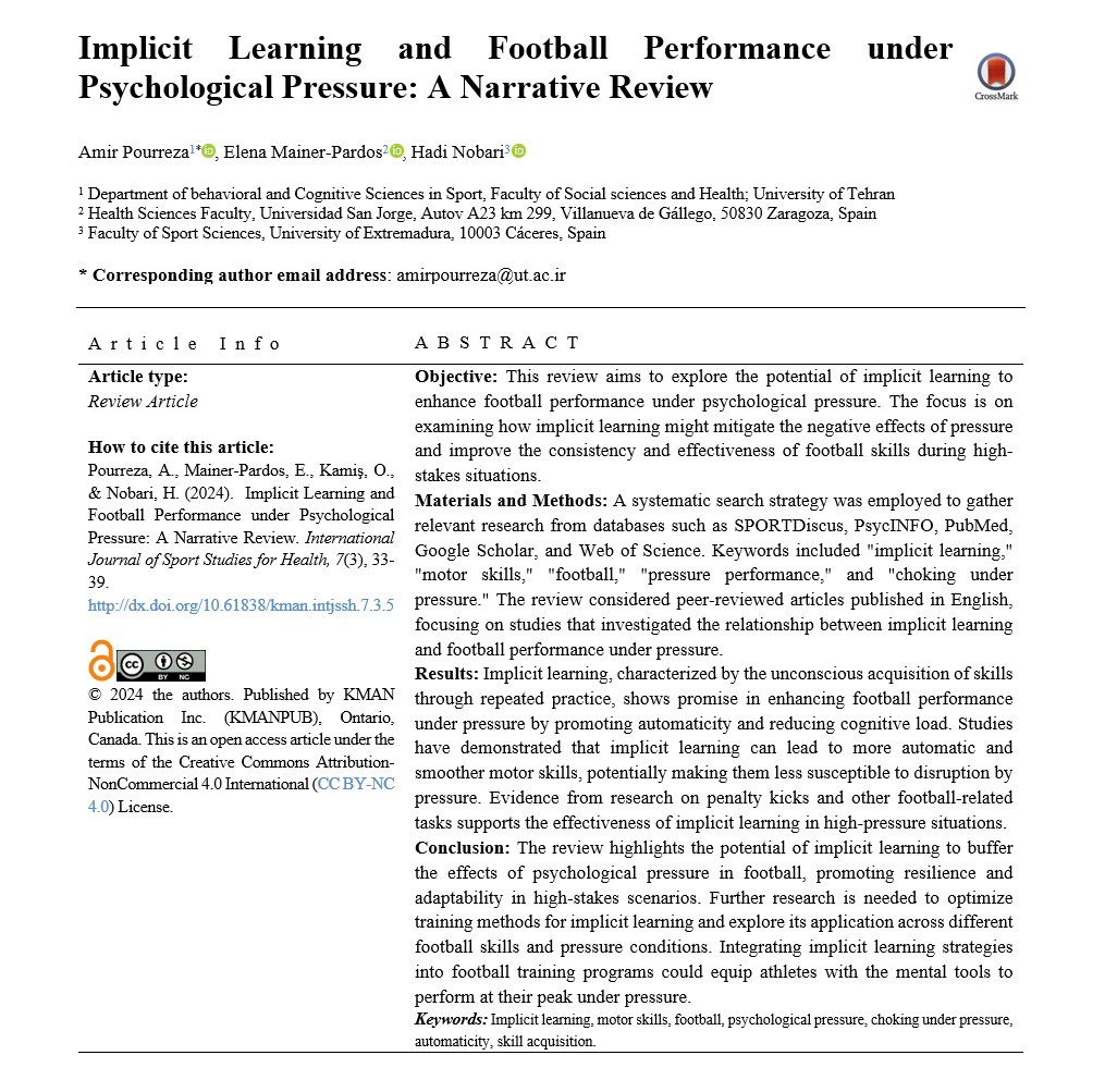 • Implicit Learning and Football Performance under Psychological Pressure: A Narrative Review