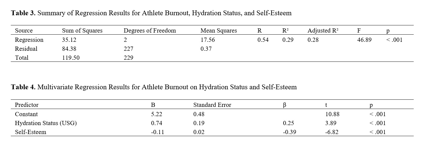 • Hydration Status and Self-Esteem as Predictors of Athlete Burnout: A Cross-Sectional Study