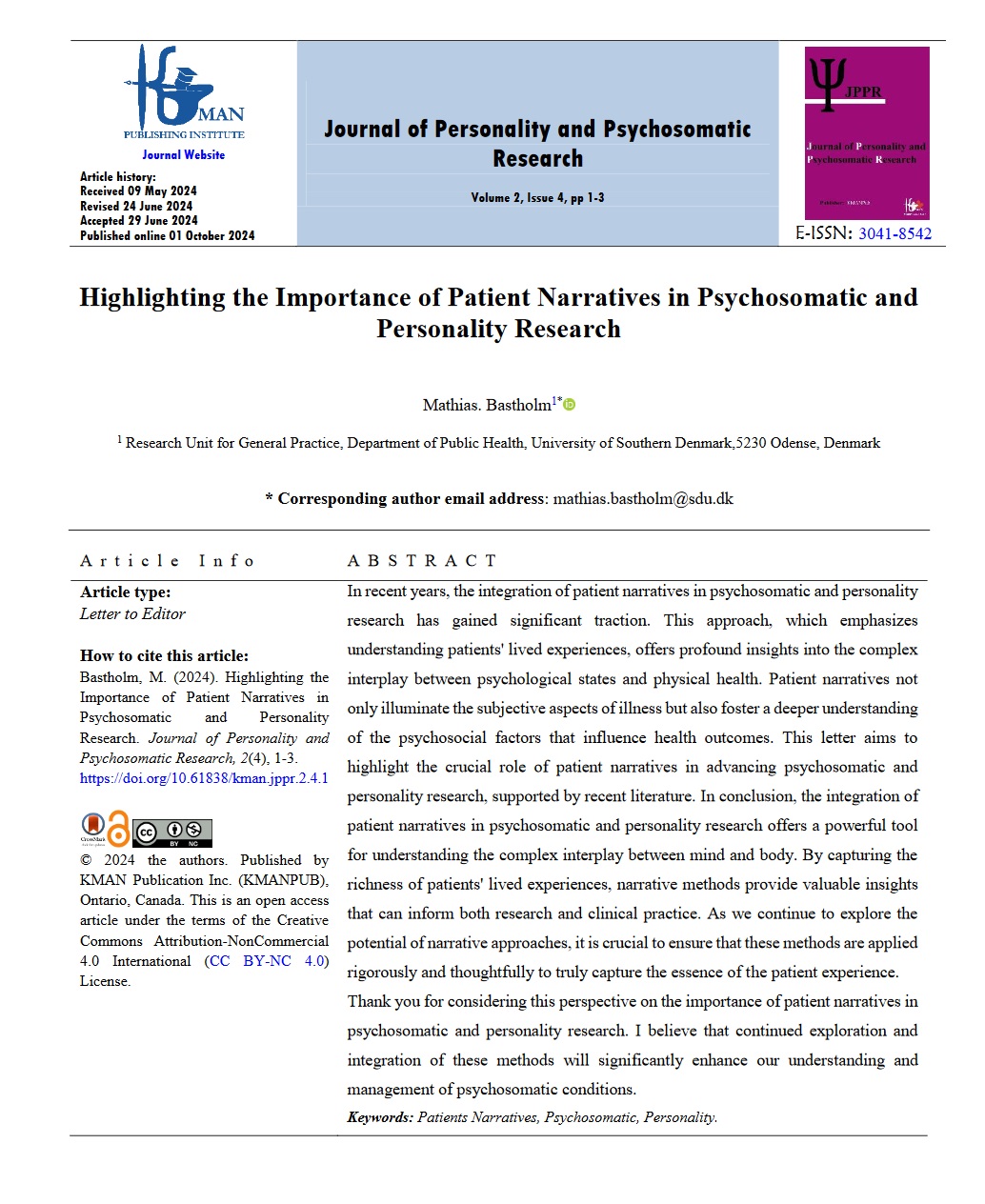 This work is licensed under a Creative Commons Attribution Non-Commercial 4.0 Unported License which allows users to read, copy, distribute and make derivative works for non-commercial purposes from the material, as long as the author of the original work is cited properly.