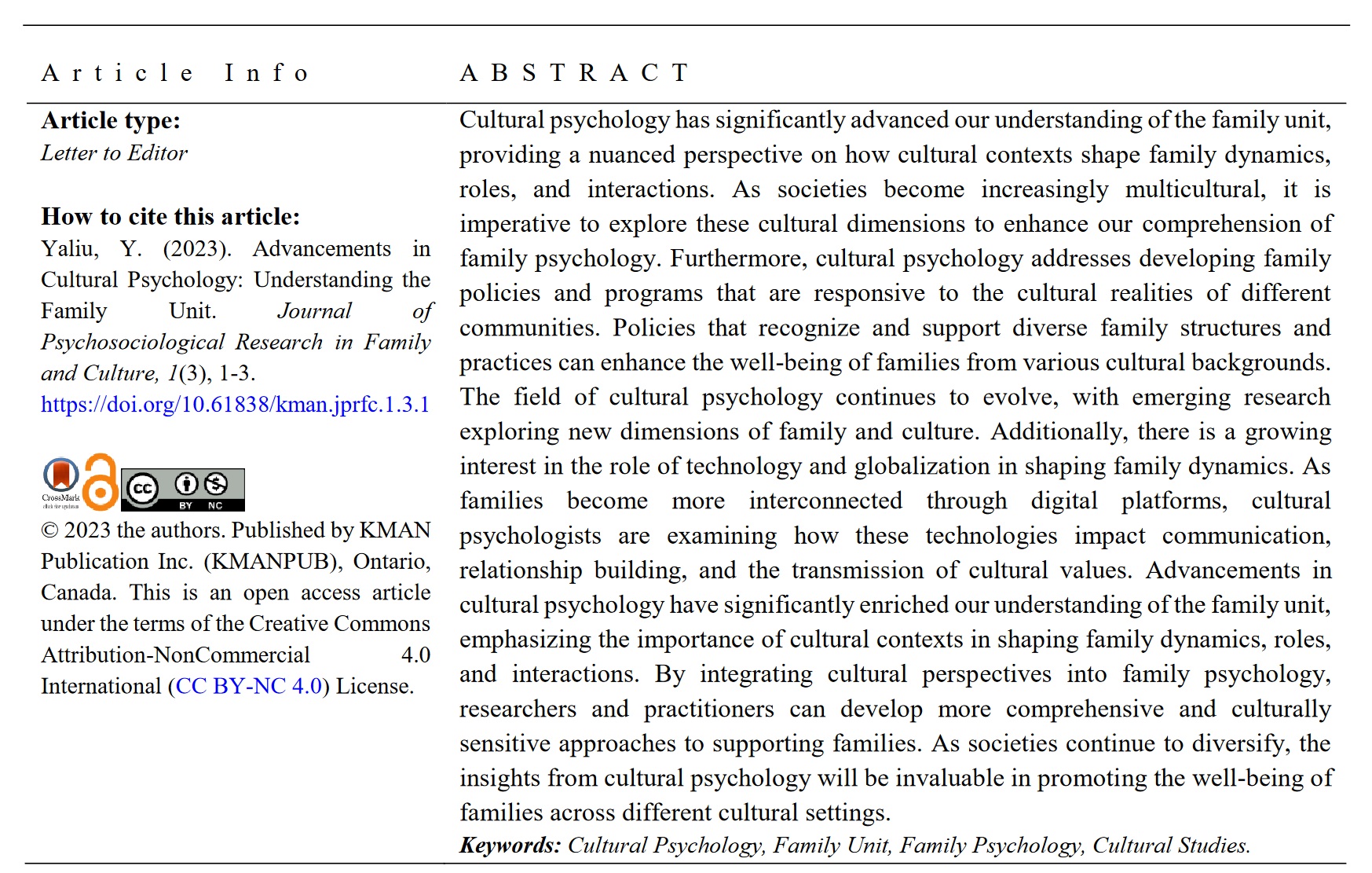 • Advancements in Cultural Psychology: Understanding the Family Unit