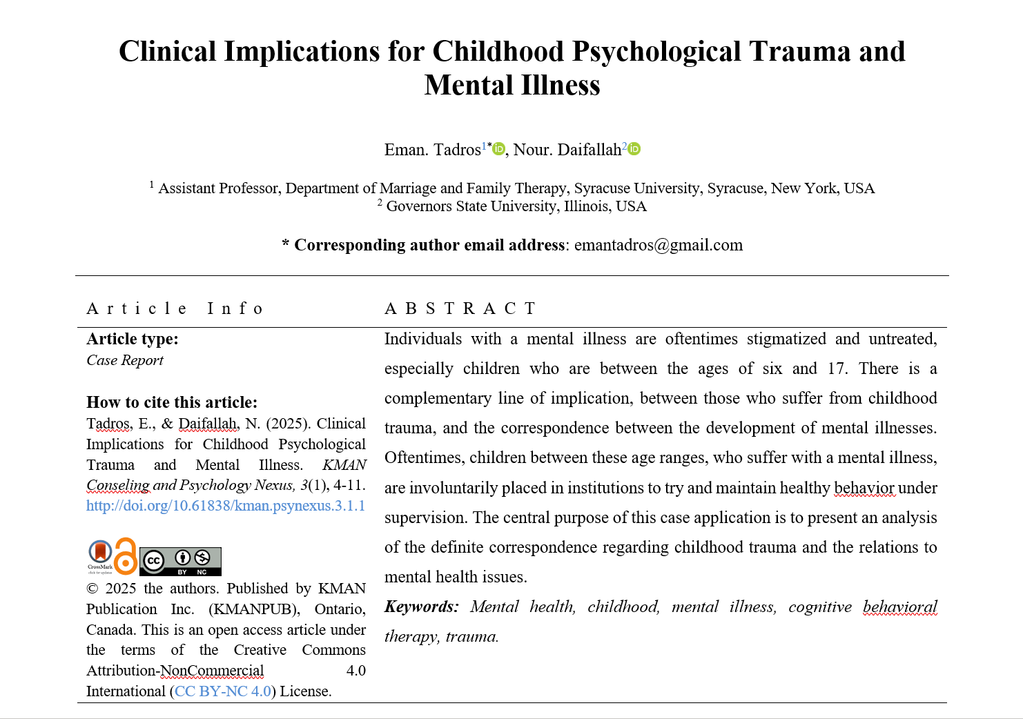 - Contact email: psychnexus@kmanpub.com /